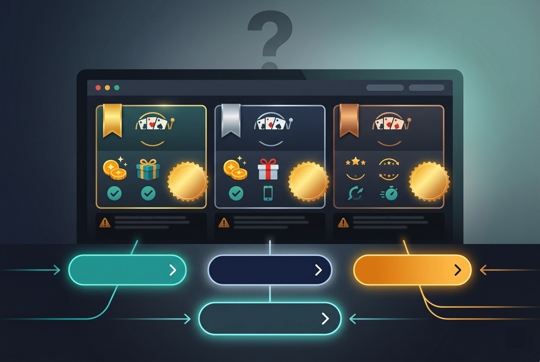 オンラインカジノの比較サイトランキング記事は、見やすく整理されているほど安心してしまいやすい一方で、危険や注意点が小さく扱われることがあります。おすすめ表現をそのまま信用しないことが大切です。